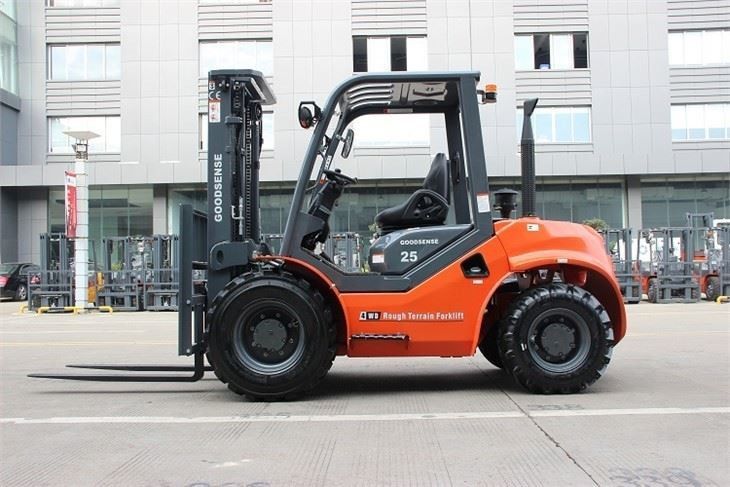 Về sự thoải mái GOODSENSE 2.5 tấn 4 bánh xe đẩy địa hình gồ ghề nâng mang lại: một chất lượng, ghế điều chỉnh cũng như một thiết kế cột cho phép một tầm nhìn rộng của hàng hóa và hoạt động.